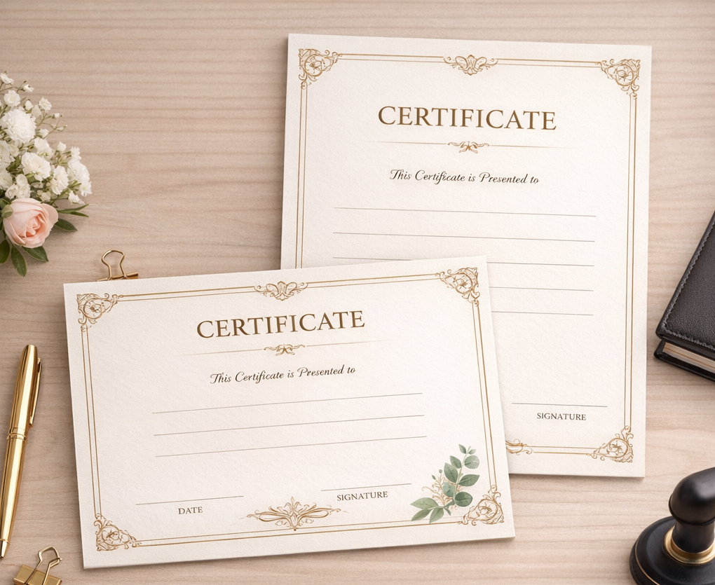 Premium certificate printing with customizable formats and coating