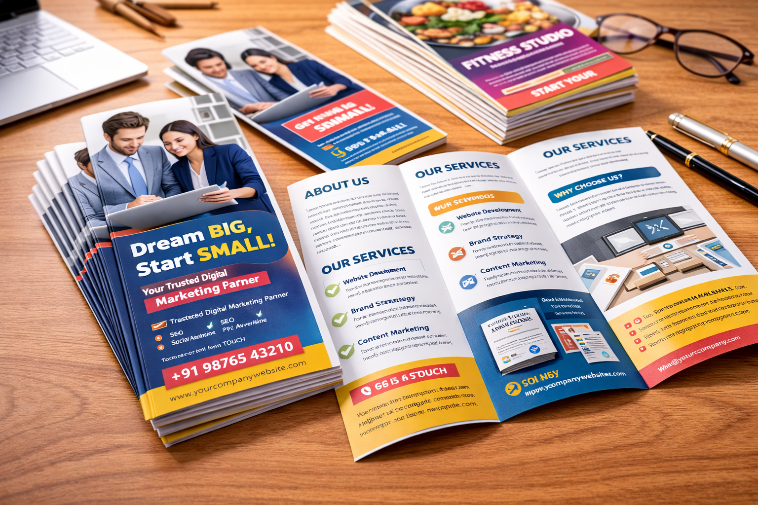 High-quality flyers and pamphlets for advertising and outreach, available with lamination finishes