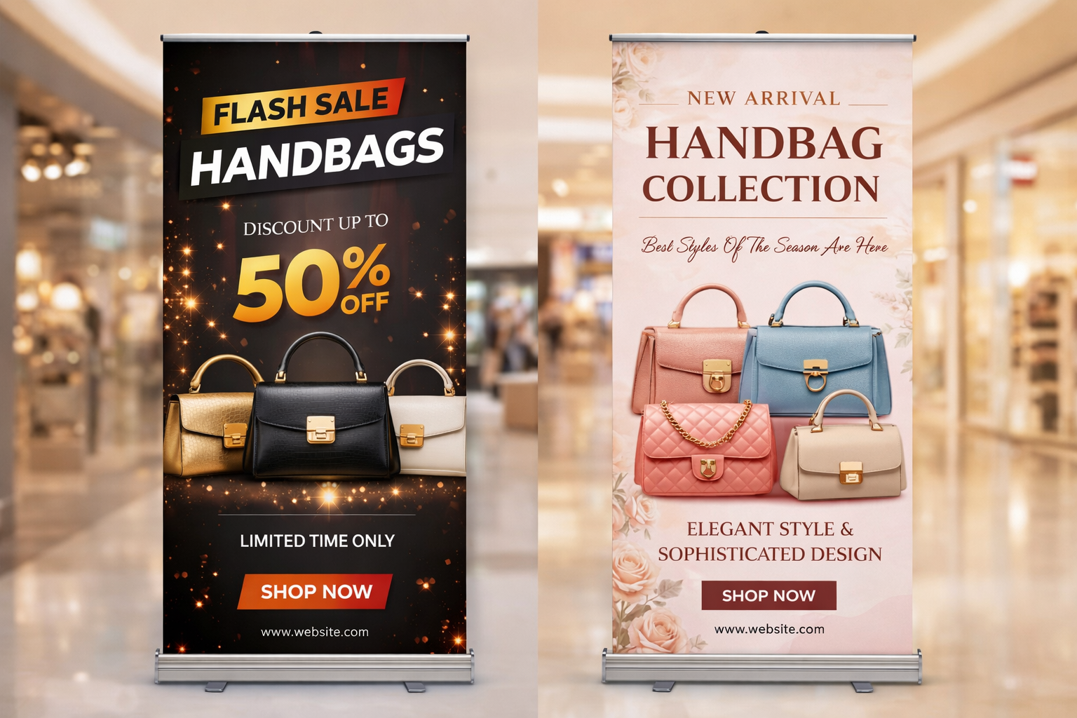 Portable roll-up standees perfect for exhibitions, events, marketing displays, and promotions