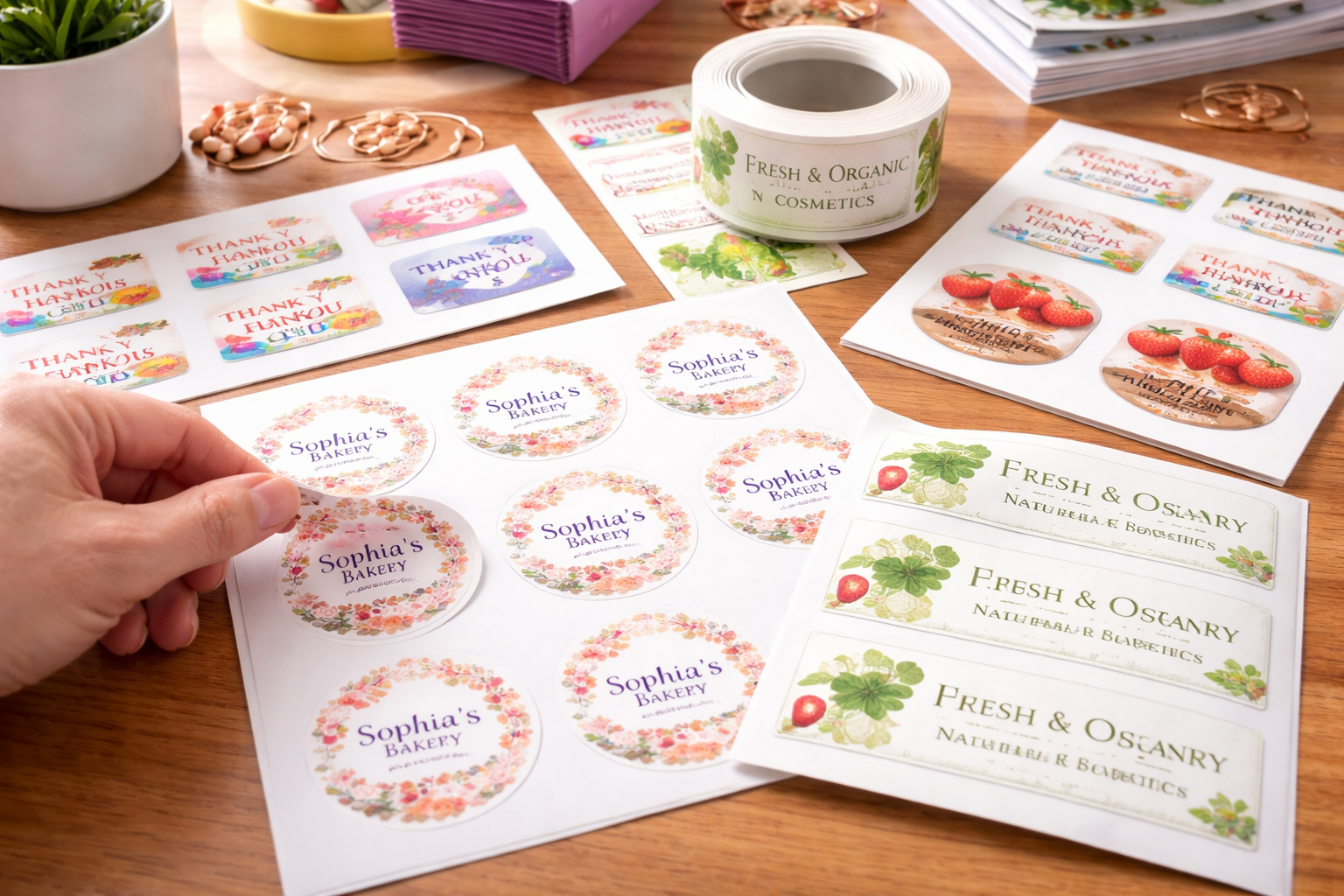 Custom stickers & labels in various sizes and shapes for packaging and promotions